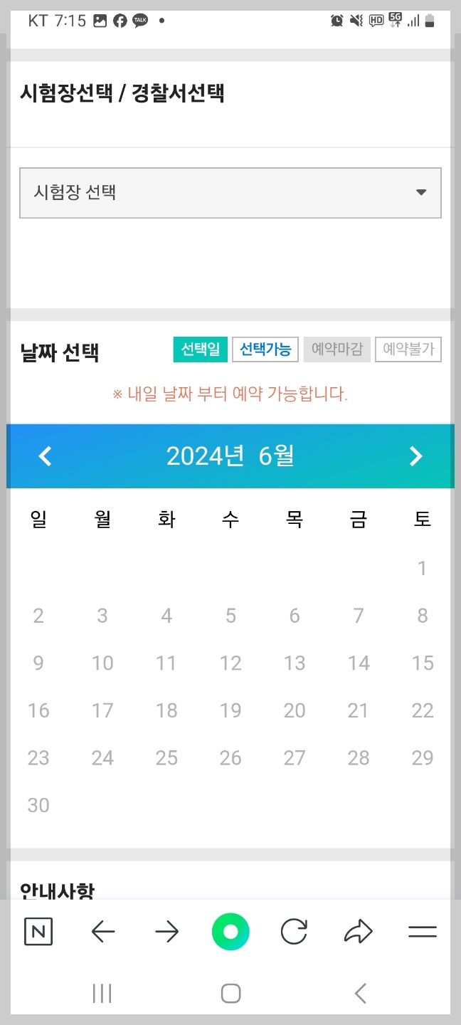 IC 운전면허증을 수령할 날짜와 운전면허시험장이나 경찰서를 선택하면 결제 항목으로 넘어갑니다.